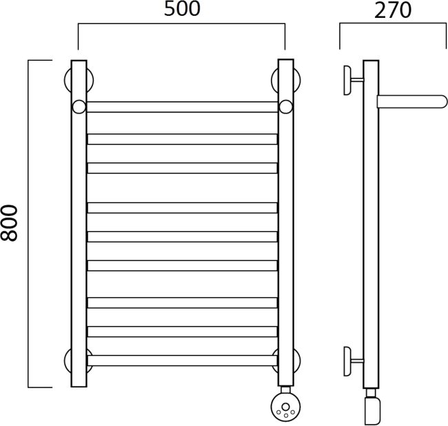 - Полотенцесушитель электрический Aquanerzh Прямой групповой с полкой R 80х50