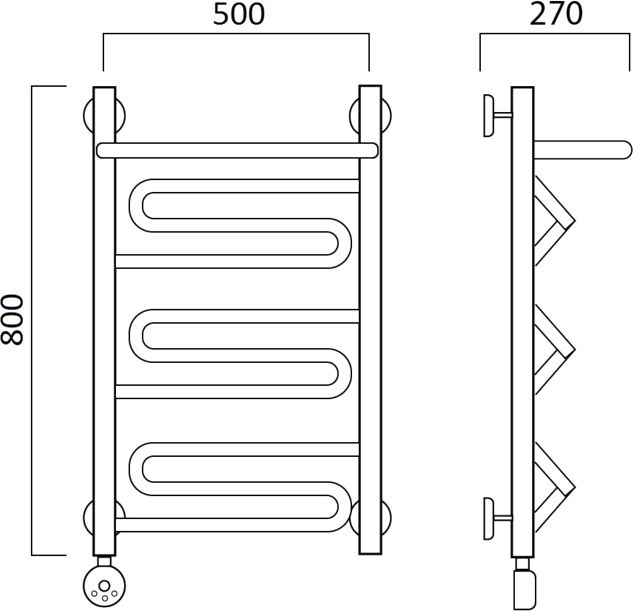 - Полотенцесушитель электрический Aquanerzh Зигзаг с полкой L 80х50