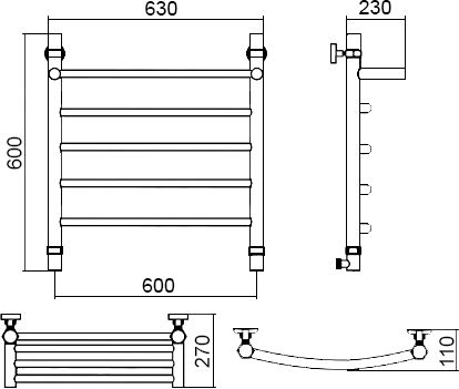 - Полотенцесушитель водяной Aquanerzh Дуга с полкой 60х60