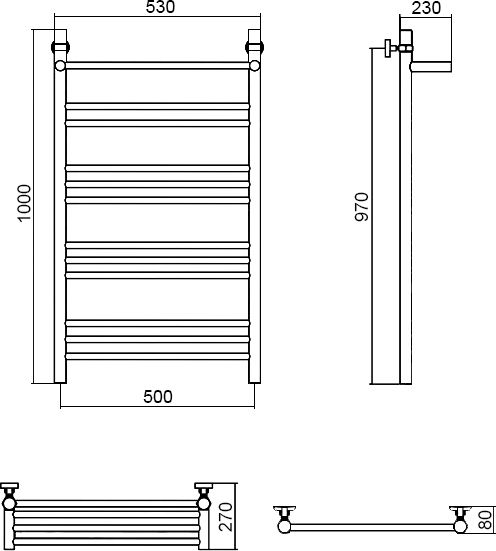 - Полотенцесушитель водяной Aquanerzh Прямой групповой с полкой 100х50