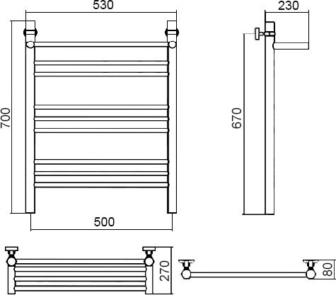 - Полотенцесушитель водяной Aquanerzh Прямой групповой с полкой 70х50
