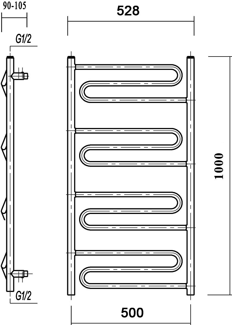 - Полотенцесушитель водяной Domoterm Офелия П12 50x100, хром