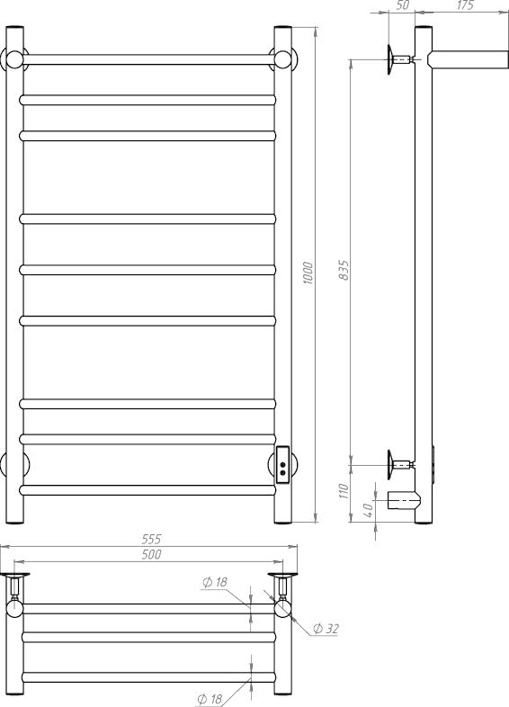 - Полотенцесушитель электрический Тругор Аспект ПЭК СП3П 100x50, с полкой