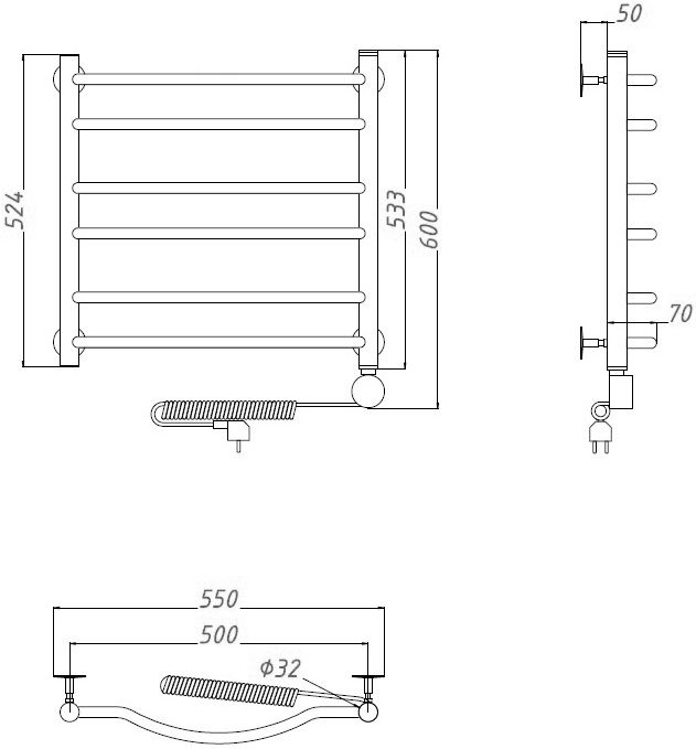 - Полотенцесушитель электрический Тругор Лотос эл ТЭН 3 ЛЦ28 60x50