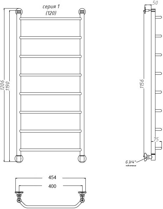 - Полотенцесушитель водяной Тругор Браво НП 1 ЛЦ4 120x40