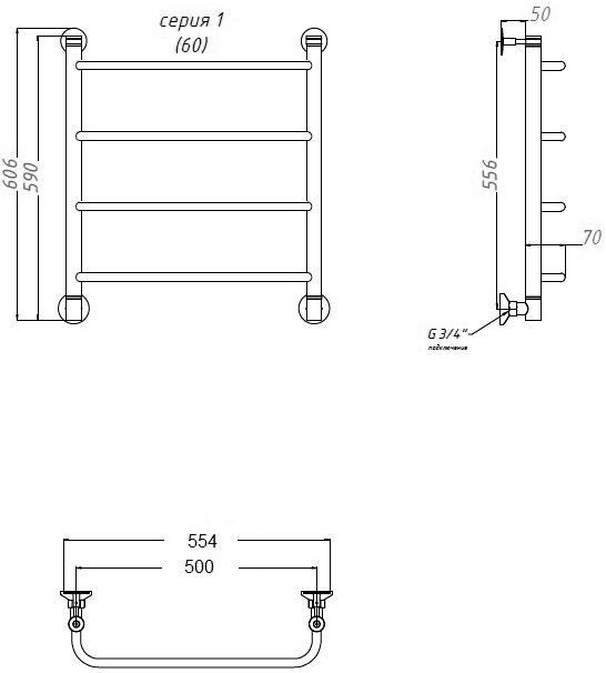 - Полотенцесушитель водяной Тругор Идеал НП 1 ЛЦ5 60x50