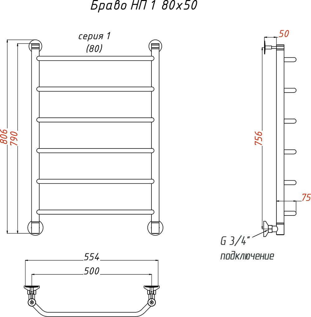 - Полотенцесушитель водяной Тругор ЛЦ Браво НП 1 80x50