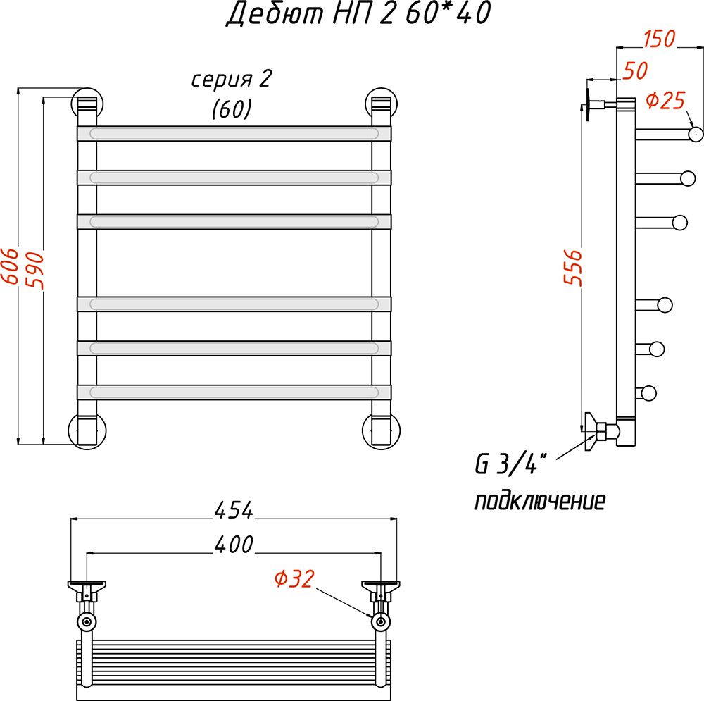 - Полотенцесушитель водяной Тругор ЛЦ Дебют НП 2 60x40