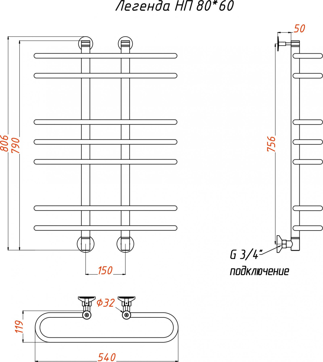 - Полотенцесушитель водяной Тругор ЛЦ Легенда НП 80x60