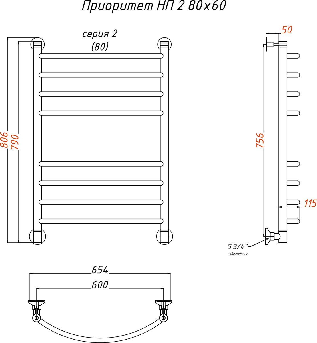 - Полотенцесушитель водяной Тругор ЛЦ Приоритет НП 2 80x60
