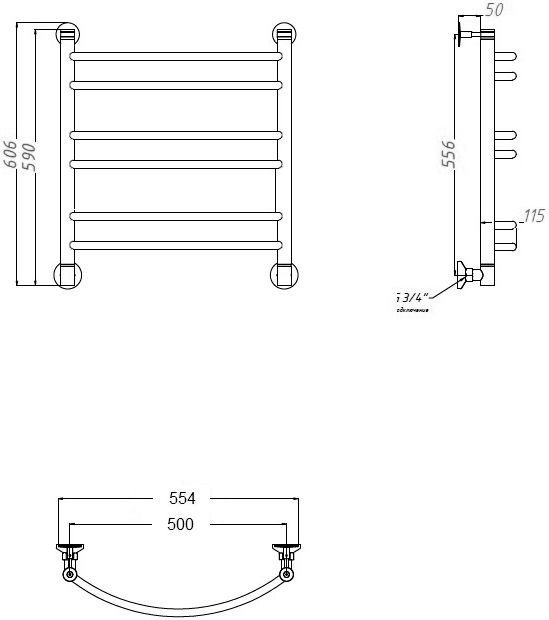- Полотенцесушитель водяной Тругор Приоритет НП 3 ЛЦ2 60x50
