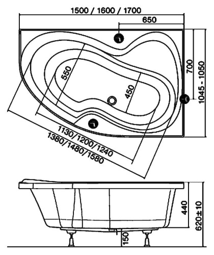 - Акриловая ванна Ravak Rosa II 160x105 R с ножками