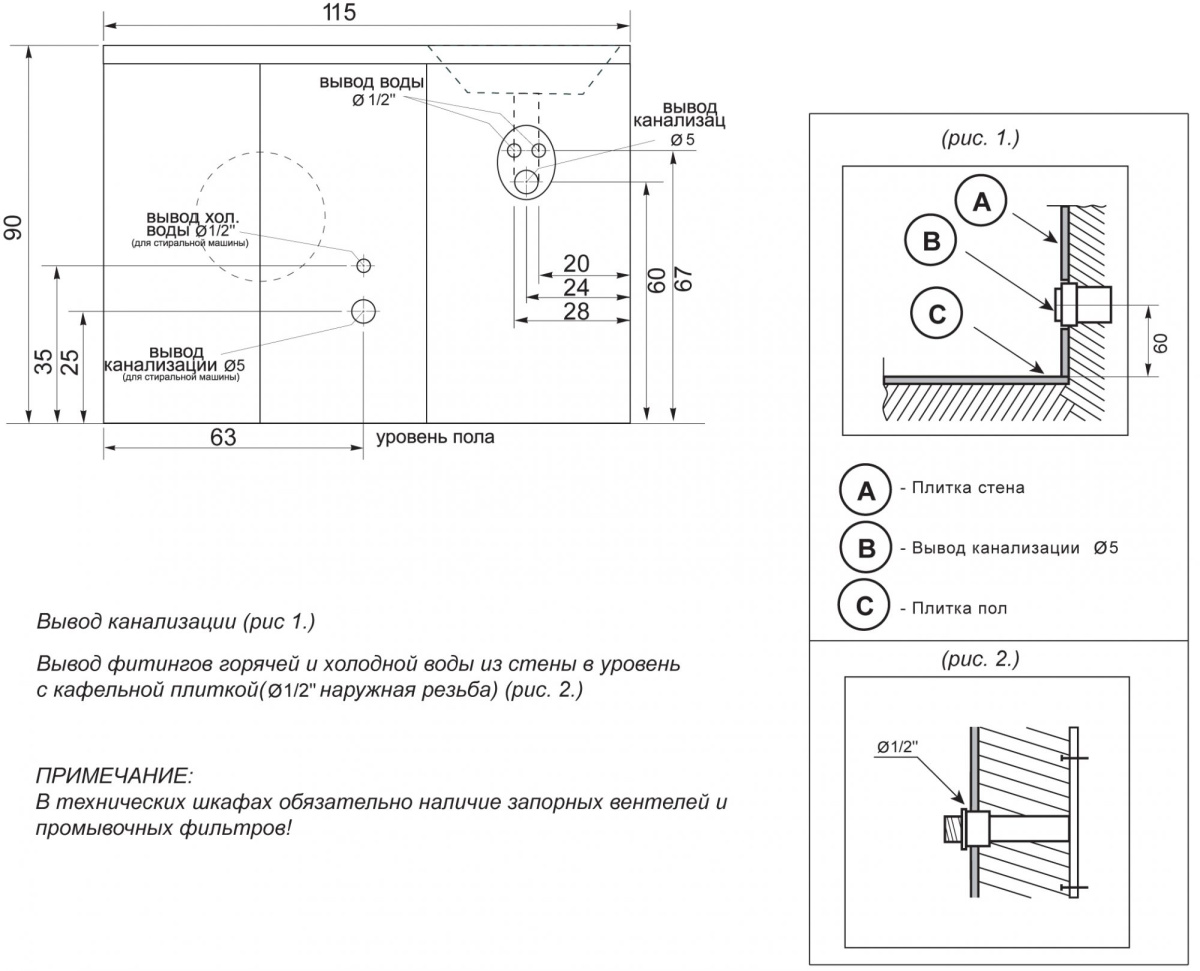 - Раковина Цвет и Стиль Гриджио 115 R