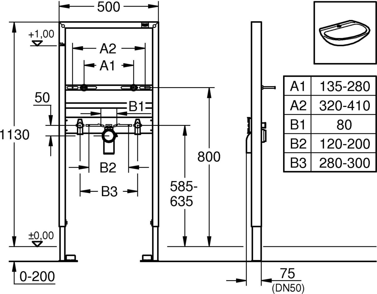 - Система инсталляции для раковин Grohe Rapid SL 38554001